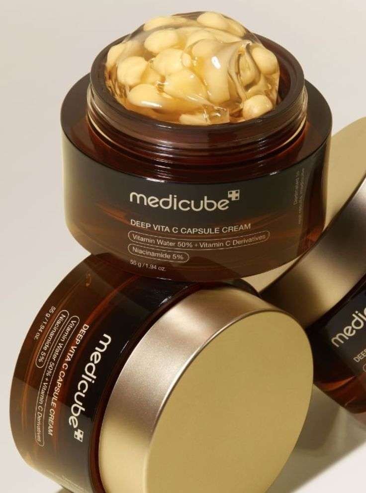 Medicube Deep Vita C Capsule Cream (55g) আপনার ত্বকের হারানো উজ্জ্বলতা ফিরিয়ে আনতে এবং গ্লাস স্কিন গ্লো পেতে এক যুগান্তকারী পণ্য। আপনি যদি হাইপারপিগমেন্টেশন, রোদে পোড়া কালো দাগ কিংবা বয়সের ছাপ নিয়ে চিন্তিত থাকেন, তবে এই ক্রিমটি আপনার স্কিনকেয়ার রুটিনের গেম-চেঞ্জার হতে পারে। Glow & Skin Care সবসময় চেষ্টা করে আপনাদের হাতে ১০০% আসল এবং কার্যকরী পণ্য পৌঁছে দিতে।