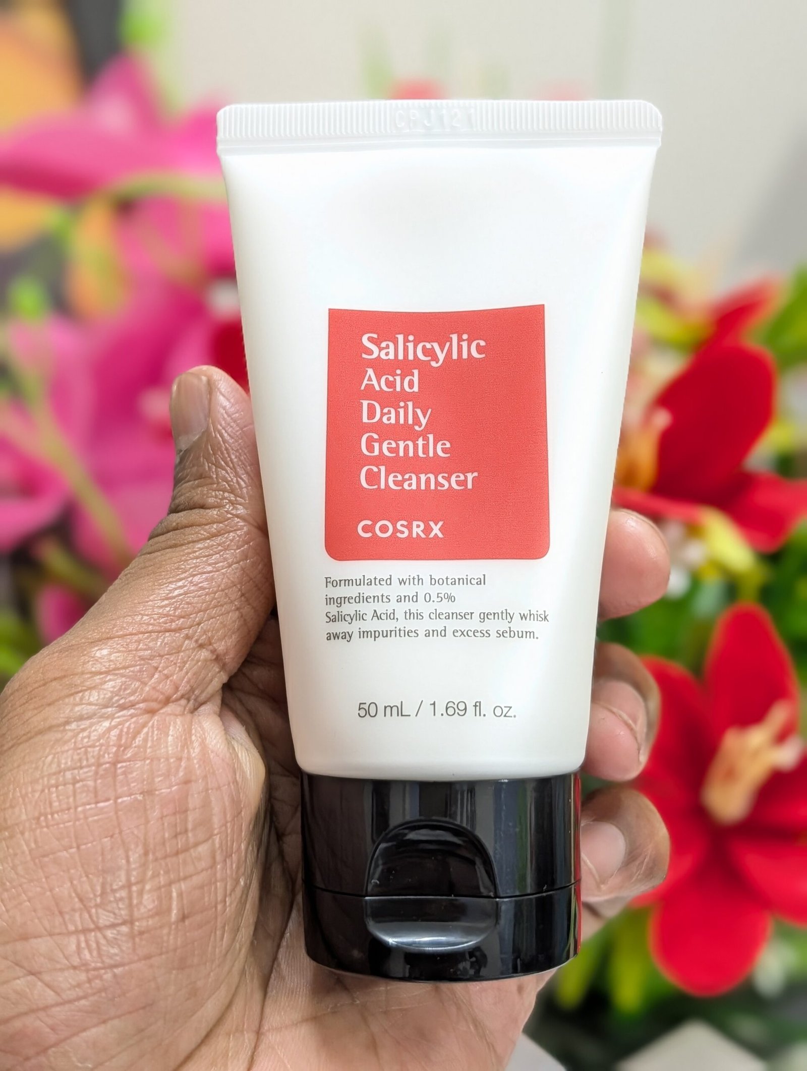 COSRX Salicylic Acid Daily Gentle Cleanser (50 ml): Formulated with botanical ingredients and $0.5\%$ Salicylic Acid, it gently whisks away impurities and excess sebum while fighting acne-causing bacteria.